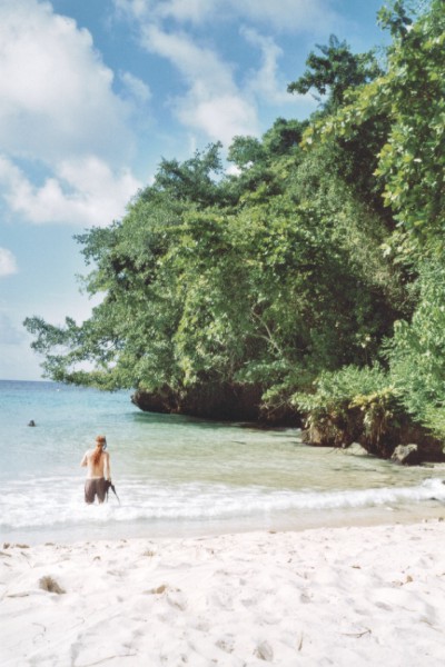 In der Umgebung von Long Bay, dem wunderschönen weißen Sandstrand. Tropische Umgebung und lauter Häuser direkt am Traumstrand. Da wollten wir bleiben und auf der Terrasse beim nächtlichen Sterne gucken bei Raggae und Red Stripe nach gutem Essen im Chill Out hatten wir ein kleines Paradies gefunden. Genau wie beim Schnorcheln in der Frenchman's Cove (für die ganzen anderen Strände an der Küstenstraße hatten wir leider keine Zeit, aber wir haben einiges gehört über die Blue Lagoon und die anderen) und bei den Reach Falls. Die Leute in ganz Portland haben wir als sehr nett kennengelernt. Allerdings sind sie nicht so ungezwungen nett wie in Treasure Beach. Ich denke man wird dort schon noch leichter verarscht.