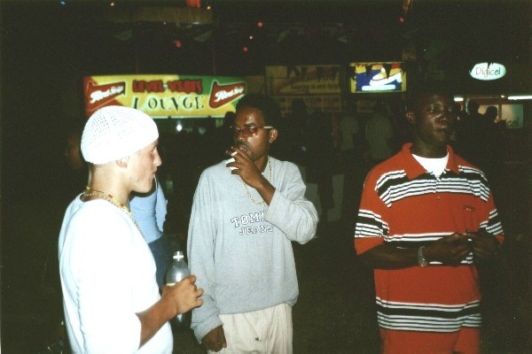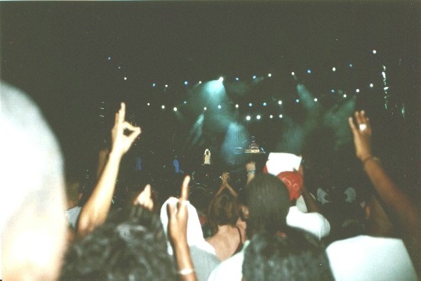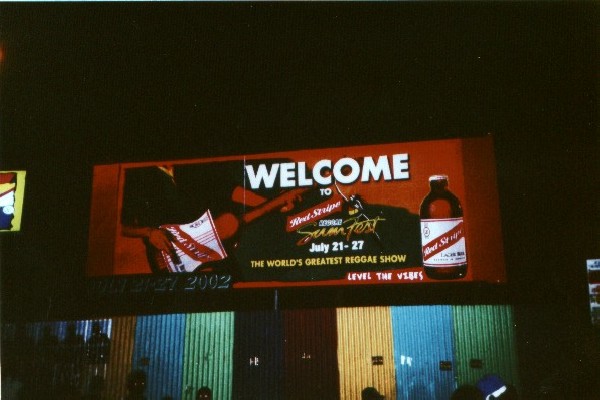 Samstag/Sonntag, 27./28. Juli, REGGAE SUMFEST 2002 Die beste Aktion des Urlaubs: Wir fahren gegen 20.00 zu siebt (Elkes Sohn Olaf, seine jamaikanische Frau, Beo, Andrew, Marvin, Felice und ich) nach Montego Bay zum Reggae Sumfest. Nachdem der Bus geparkt ist, holen wir die Tickets: 1500 J$ pro Karte (guter Preis). Juhuuu, wir sind da !!! Coole Atmosphäre und ein supergeiles Publikum, vor allem was die (jamaikanischen) Girls anbetrifft. Hier gefällt es mir J ! Bevor der erste Künstler auf die Bühne kommt, kaufen wir noch was zu Essen und zu Trinken und dann geht es endlich los. Und was für ein Anfang: Rayvon, Shaggy, RikRok & The Big Yard Family heizen das Publikum schon mal richtig ein. Die Fläche füllt sich allmählich, ca. 50.000-75.000 Leute. Der nächste Artist betritt die Bühne und wird mit viel Applaus begrüßt. Es ist Damian "Junior Gong" Marley, einer von Bob Marley´s Söhnen. Seine Performance gefällt mir sehr gut, besonders weil er auch alte Bob-Songs wie etwa "Could you beloved" oder "We and them" spielt. Nach einer kurzen Pause kommt dann noch Ashanti. Allerdings kommt ihr sexy Kleid beim Publikum besser an als ihre Songs. Aber no problem, schließlich fehlt ja noch ein Artist. Nämlich........JA RULE. Bei seinem Auftritt geht´s natürlich tierisch ab... Um 4.00 verlässt Ja Rule die Bühne und das Konzert endet unter lässigen Reggae-Rhythmen. Um 7 Uhr morgens kommen wir dann ziemlich "breit" und müde in Run Bay an und fallen sofort in unsere Betten. | |||